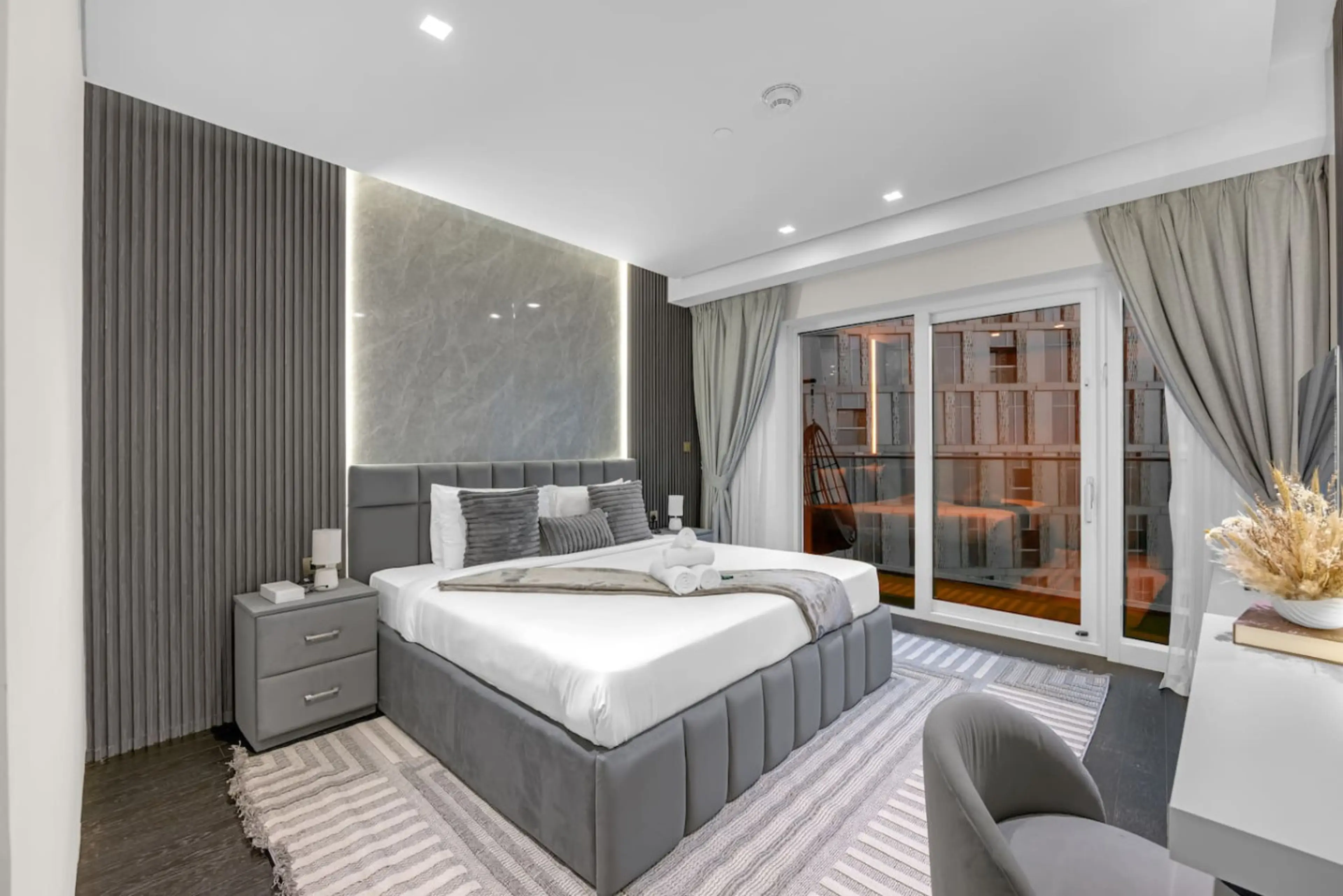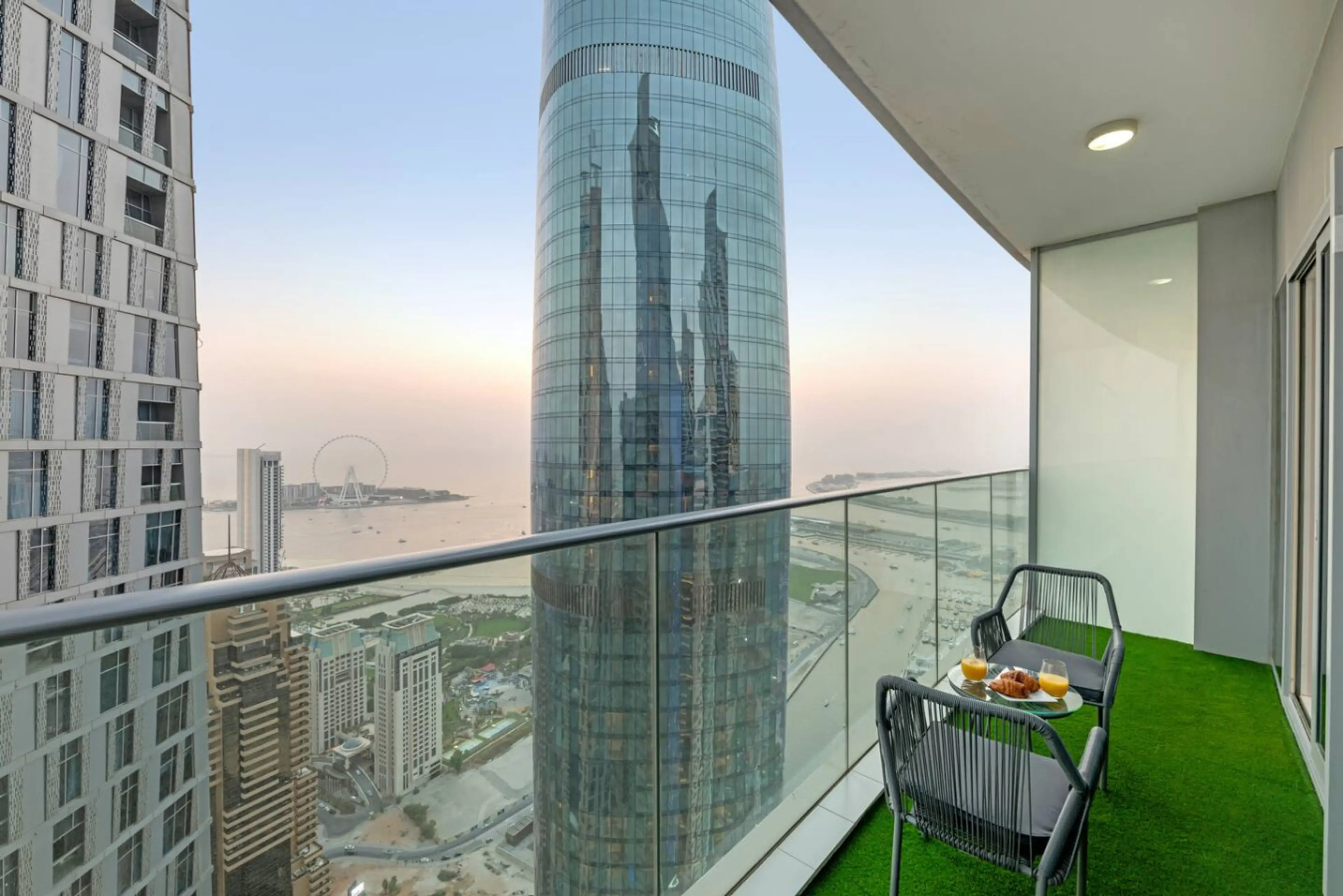 Welcome to our luxury 1BR apartment on the 66th floor in Dubai Marina. Enjoy panoramic views of the Dubai Eye, Marina, and Harbour from your private balcony and floor-to-ceiling windows. The home features a king bedroom with desk, modern living area with sofa bed, fully equipped kitchen, and 1.5 bat...